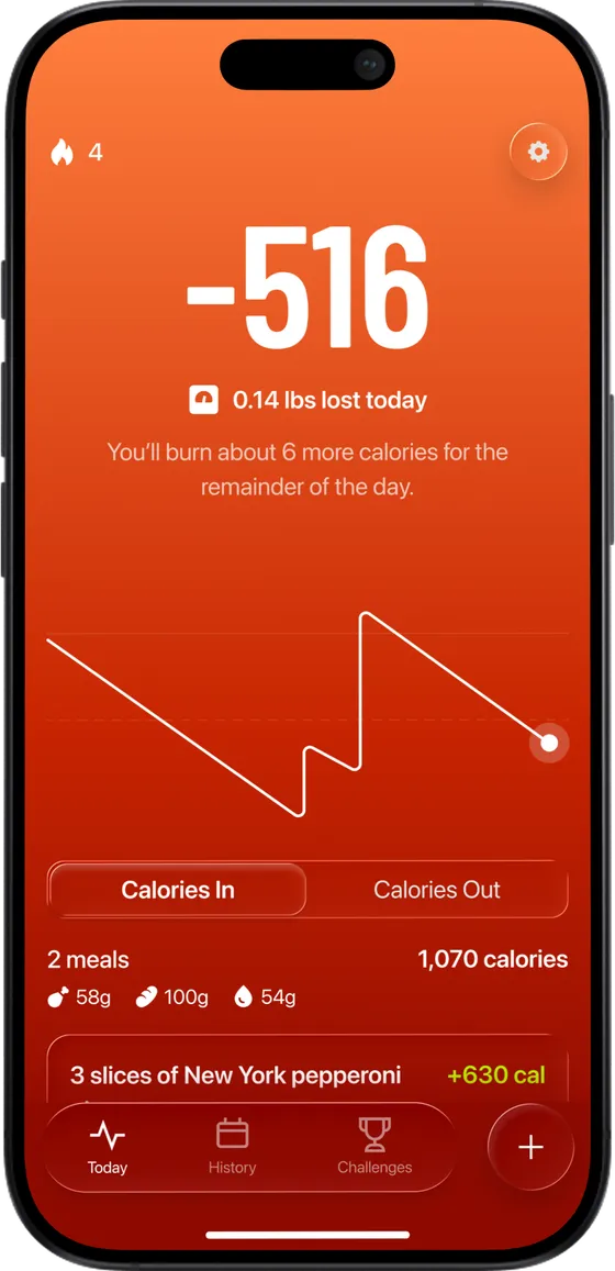 When you log your meals with AI or bar scan, we calculate all the calories and macros to give you your total Calories In for the day.